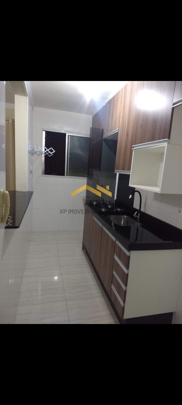 Apartamento com planejados na cozinha e sala.